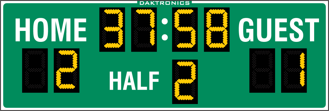 Our ColorSmart® digits respond to the changing events during your game. Show which team is ahead and whether the game clock is stopped, running or under one minute by changing colors between red, amber and green.